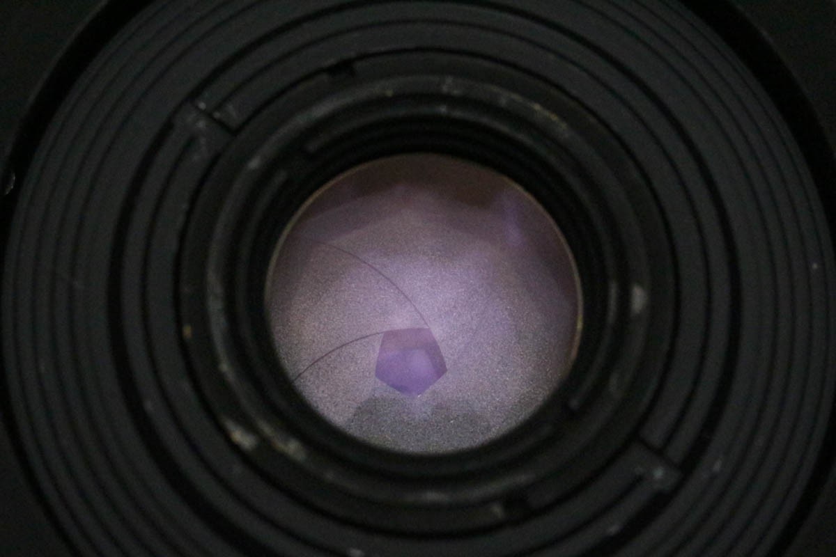 チリの混入と薄くもりがありますが、オールドレンズの描写を楽しむに問題ない実用品です。